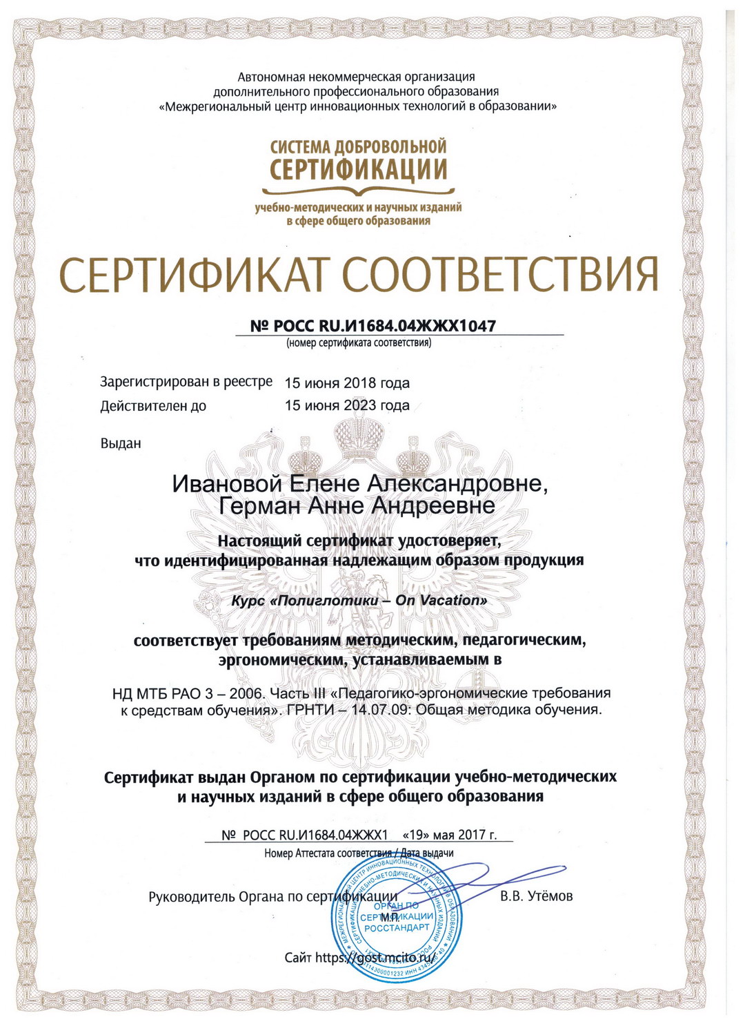 All our programmes are certified for compliance with the methodological, pedagogical and ergonomic requirements:
