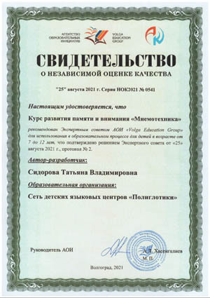 Mnemonics course. This course develops memory, boosts associative thinking, visual and auditory attention, imagination, speech. It helps to improve speaking skills, enrich vocabulary.